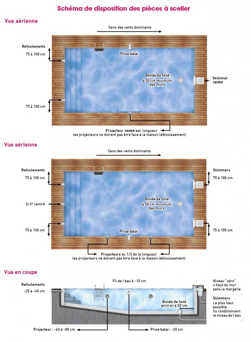 Empecemos por el principio... Las piezas a sellar son elementos que se encuentran en una piscina tan pronto como está equipada con un sistema de filtración: de hecho, son los que conectan esta última a la piscina y permiten que el agua fluya. para ser filtrado, desinfectado y mezclado en circuito cerrado. Sin estas piezas de sellado, el agua acabaría (entre otras cosas) adquiriendo un color extraño con el tiempo, o aparecerían fugas por todas partes.