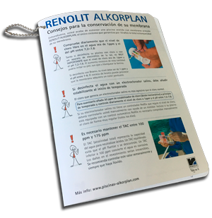 El mantenimiento de la membrana reforzada no es complicado, sólo requiere tomar algunas precauciones. Utilice agua de la red, no agua de pozo. Es importante limpiar la línea de agua periódicamente y tener cuidado con los depósitos de cal. Para conservar su membrana reforzada, se recomienda mantener un pH entre 7,2 y 7,6. Preste atención al nivel de cloro, ya que representa una amenaza para la estanqueidad de su piscina. Su nivel debe estar entre 0,5 y 1 ppm.